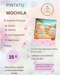 Será una experiencia creativa y solidaria donde podrás diseñar y personalizar tu propia mochila, pasar un rato diferente y colaborar con una buena causa, en un ambiente relajado y cercano.