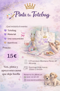 Te invitamos a participar en el taller solidario “Pinta tu Totebag”, una experiencia única donde podrás personalizar tu propia bolsa de tela mientras disfrutas de la compañía de nuestros cachorros.