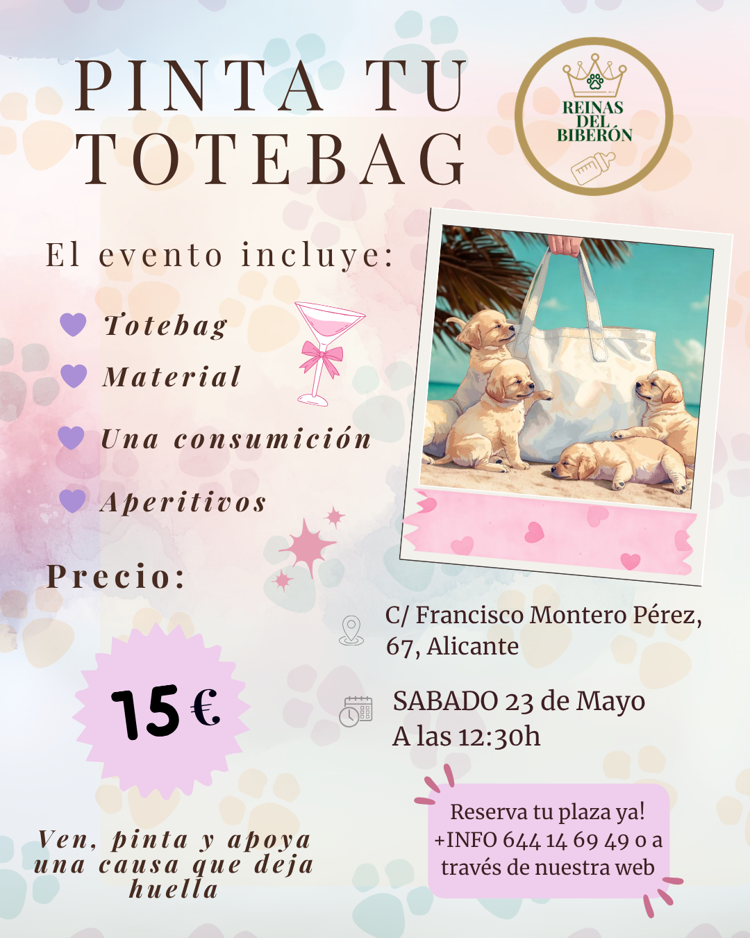 Te invitamos a participar en el taller solidario “Pinta tu Totebag”, una experiencia única donde podrás personalizar tu propia bolsa de tela mientras disfrutas de la compañía de nuestros cachorros.