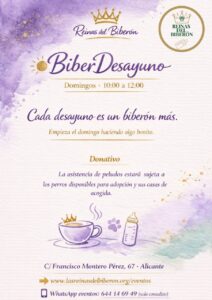 Todos los domingos te esperamos en nuestro Biber-Desayuno, un espacio donde podrás disfrutar de buen ambiente, conocer a nuestros cachorros en adopción y colaborar mientras tomas algo. ¡Tu visita puede cambiar vidas!