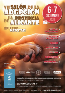 El VII Salón de la Adopción de la Provincia de Alicante llega los días 6 y 7 de diciembre de 2025 dentro de ExpoMascotas, en Fira Alacant (IFA).