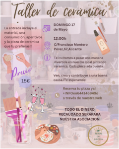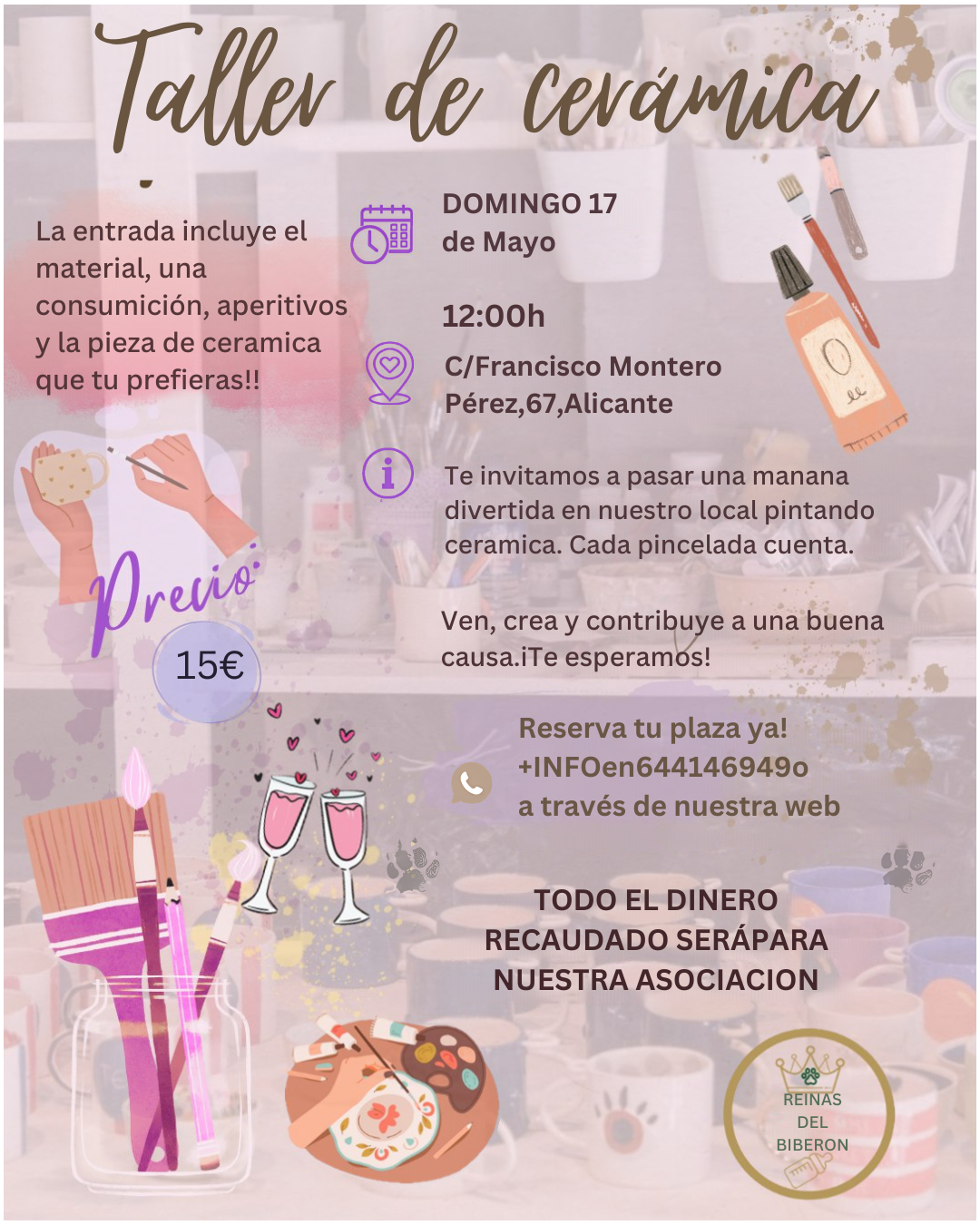 Te invitamos a participar en un divertido Taller de Cerámica de Pascua en nuestro local de la Asociación Reinas del Biberón (C/ Francisco Montero Pérez, 67, Alicante).