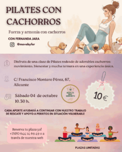 • Porque el Pilates con Cachorros en Alicante es una experiencia diferente, divertida y con causa