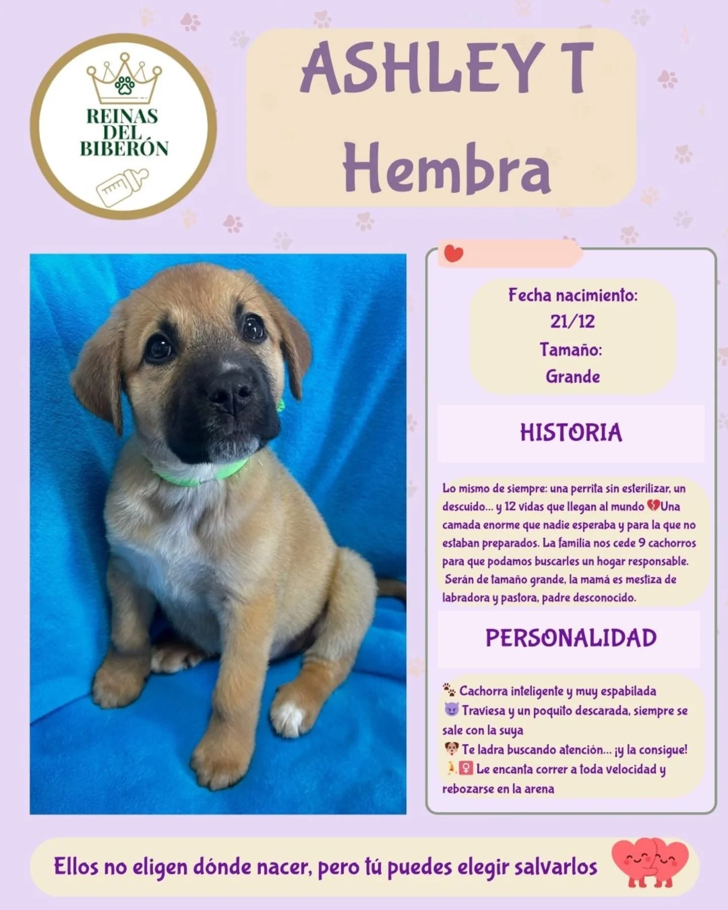 Ashley T es inteligencia pura. Espabilada, traviesa y con una personalidad marcada. Es de esas cachorras que parecen entenderlo todo antes que los demás.
