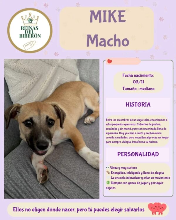 Mike fue encontrado entre restos de un antiguo solar, en un entorno hostil que no era lugar para un cachorro. Estaba sucio, asustado y sin entender por qué tenía que sobrevivir solo siendo tan pequeño. Sin embargo, desde el primer momento dejó claro que dentro de él había una alegría imparable.