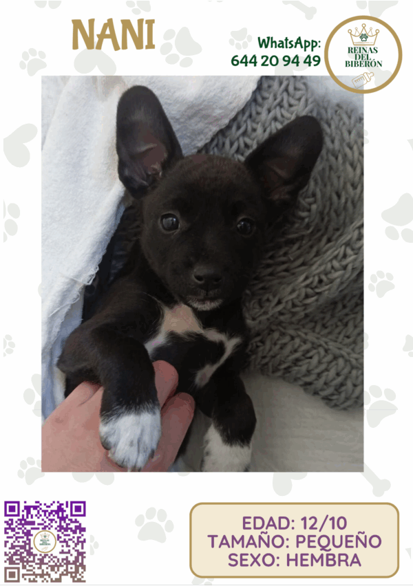 Con cuidados constantes, comida, baños calientes y mucho amor, Nani dejó atrás el frío y la soledad. Hoy es una cachorrita despierta, juguetona y sociable. Observa todo, aprende rápido y se siente protegida, especialmente junto a su hermana Lilo.