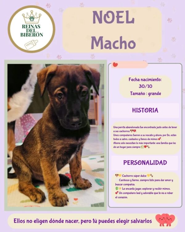 Será un perro de tamaño grande y un compañero leal, de los que se convierten en apoyo y hogar. Noel es amor constante y sincero.